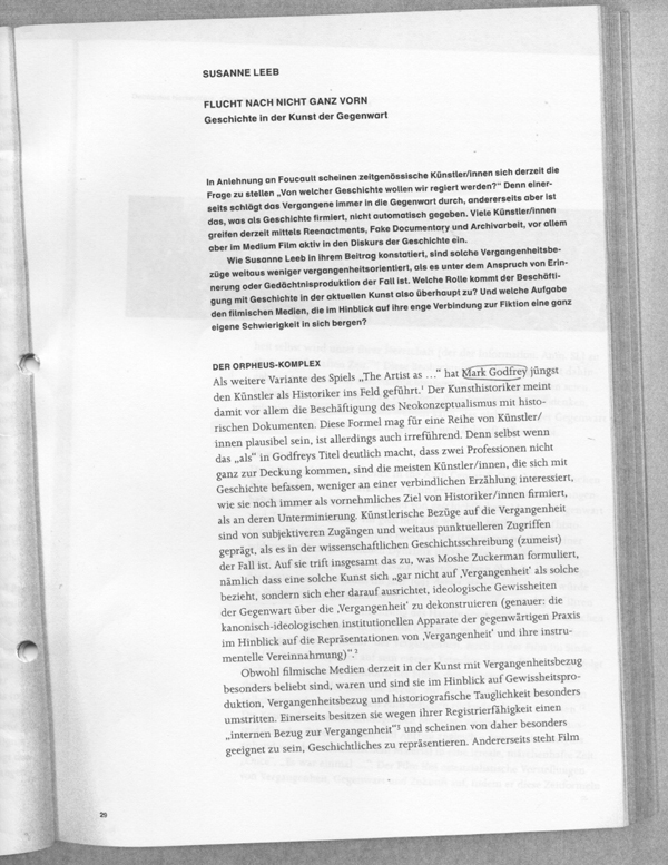 Seit dem New Historicism hat sich die Einsicht durchgesetzt, dass Geschichte nicht nur etwas mit „Vergangenheit“ zu tun hat, sondern in erster Linie eine bestimmte Narrationsform mit eigenen Tropen und Figuren ist. Anders aber als das Vergangensein aber kann man Narrationen umformulieren. In jüngerer Zeit greifen KünstlerInnen vor allem in diese Narrationen ein. Hinzu kommt, dass Geschichtsdarstellungen gerade im medialen 20./21. Jarhhundert eben auch nicht mehr nur textuell, sondern vor allem auch bildlich und filmisch verfahren. Der Vortrag geht anhand einiger Beispiele aus der zeitgenössischen Kunst dem aktuellen Umgang mit Geschichte nach.